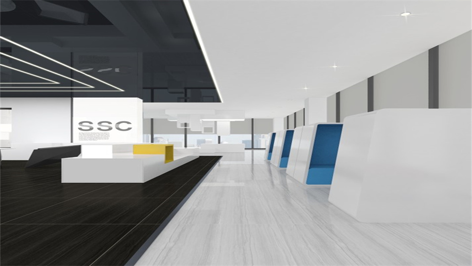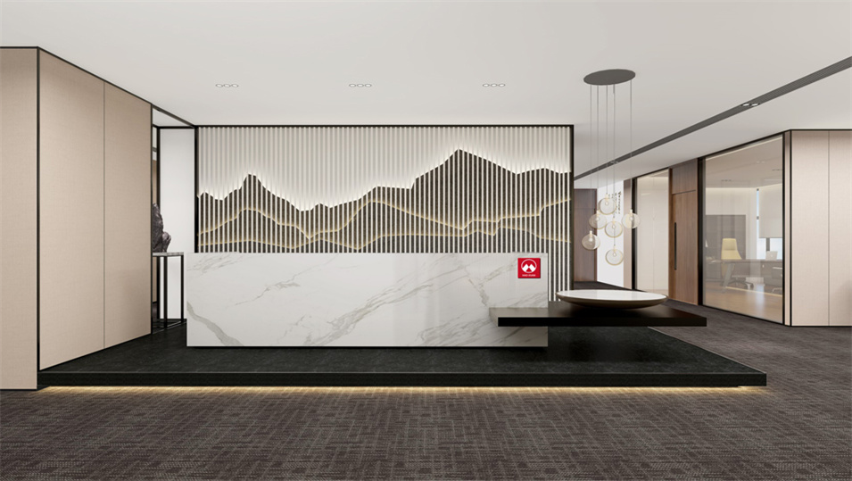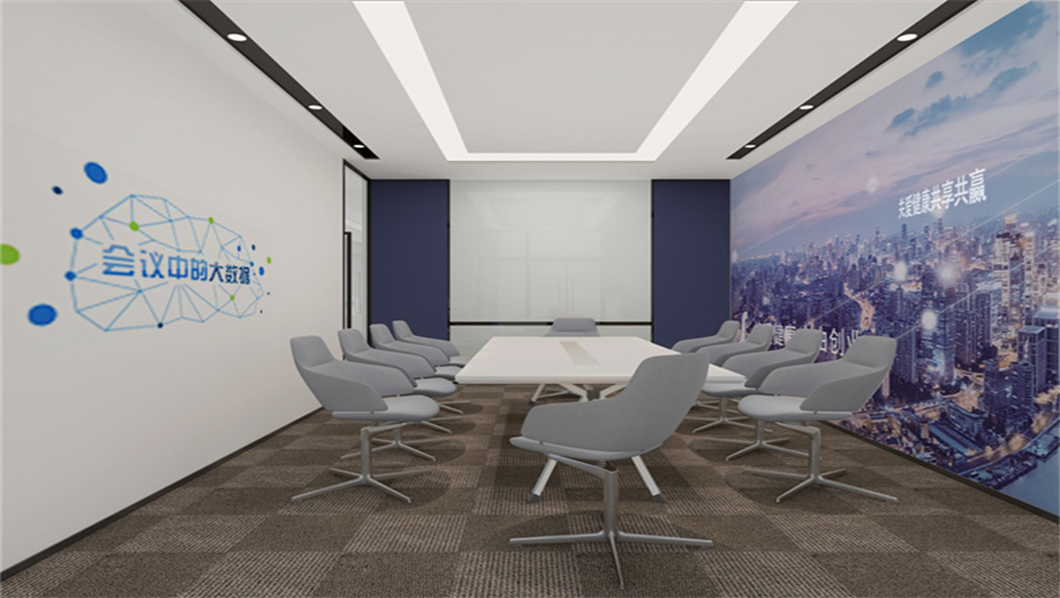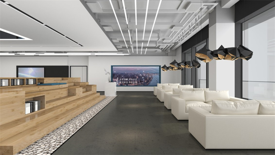 設計介紹:主要展示前臺、洽談區(qū)、走廊、貴賓區(qū)、會議室、辦公區(qū)等各個區(qū)域?qū)嵨飯D,設計師們采用現(xiàn)代簡約風格辦公室設計,主要以白色為主,藍色更符合智能化科技的公司形象,通過幾何圖形與條紋裝飾打造科技智能的辦公空間。
