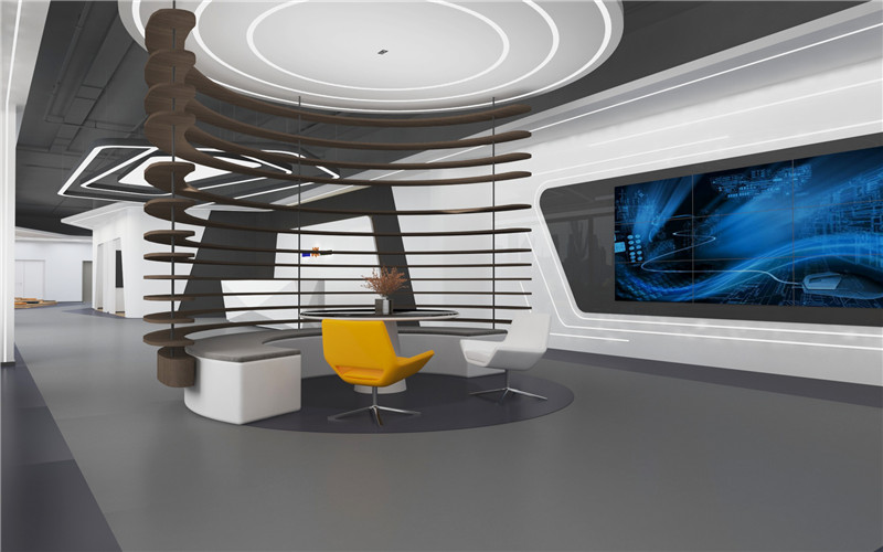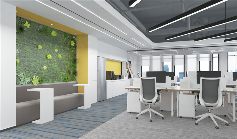 4)比較不常見(jiàn)的吊頂設(shè)計(jì)方式叫光棚式天花。光棚式天花是天花在某部分或全部用木或金屬作圖案框架,在架上放置透光片,在棚架上排布日光燈,燈光通過(guò)燈片的散射形成整個(gè)棚通亮,如同天窗透光的天花造型,通過(guò)透光的效果,產(chǎn)生較高的心理空間,給人以高于實(shí)際尺度的空間感,但同時(shí)造價(jià)也較高,不夠節(jié)能,所以這類設(shè)計(jì)方式在實(shí)際辦公樓裝修運(yùn)用中并不常見(jiàn)。